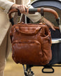 Zaino fasciatoio pratico ed elegante "Carina" in pelle marrone per genitori in movimento