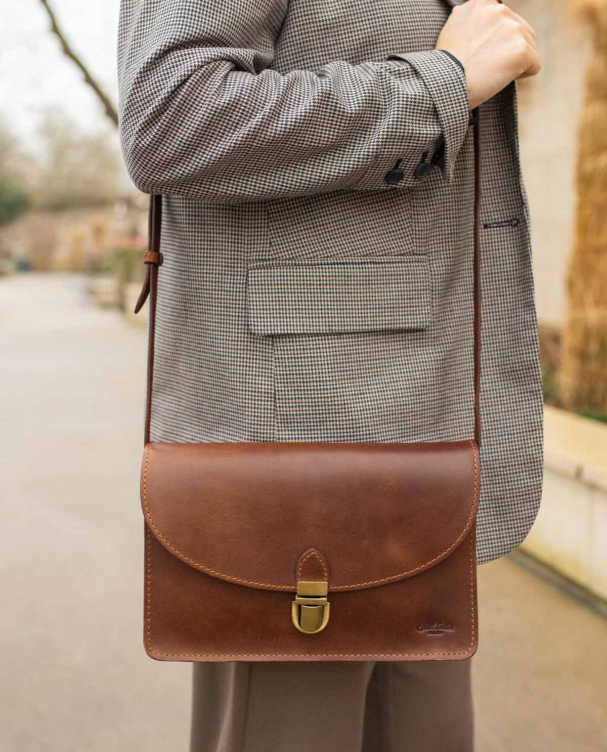 Borsa a tracolla borsa da donna vintage marrone pelle