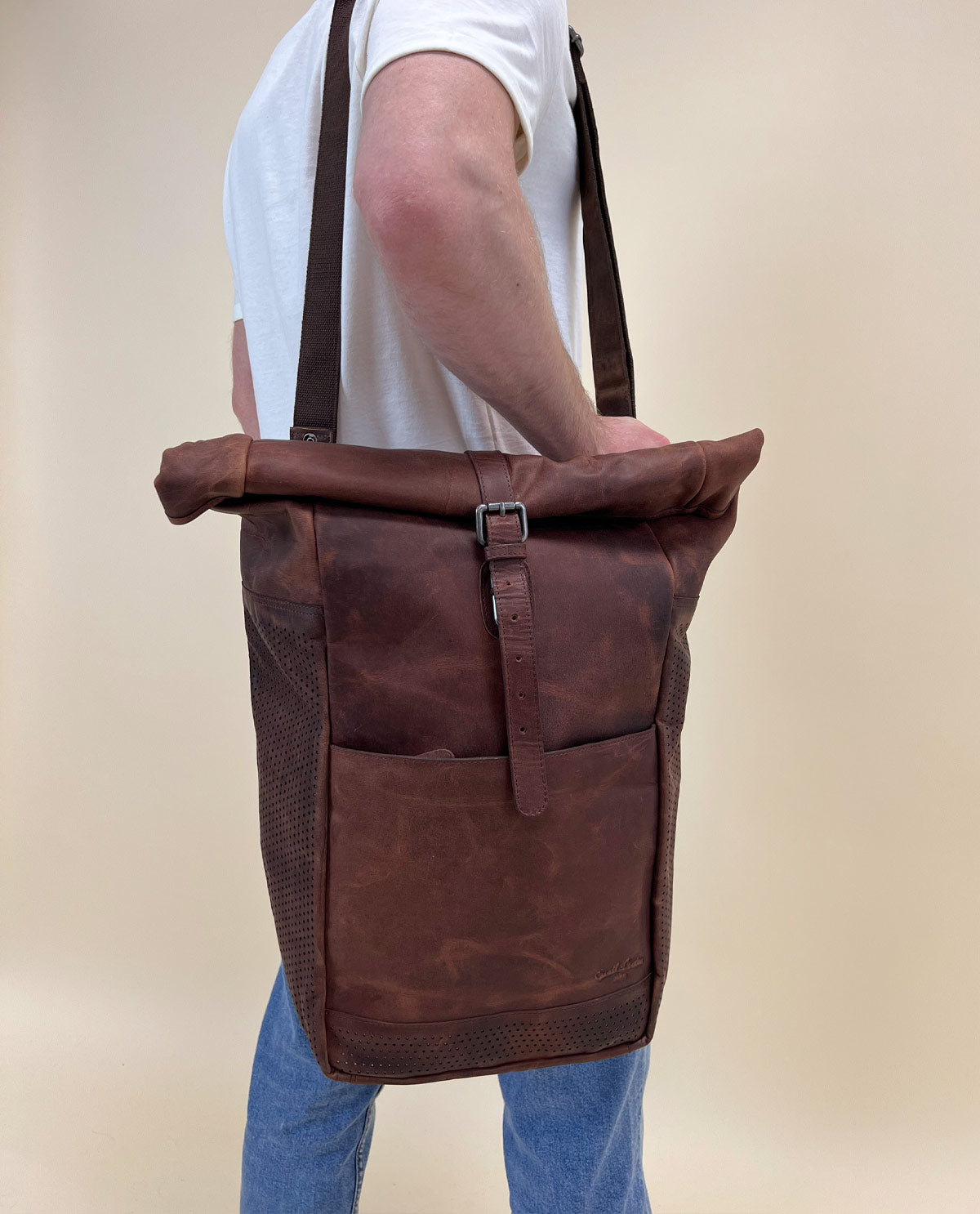 Ecco il tuo nuovo preferito in pelle: "Miquel I." convince con vera pelle in una lavorazione extra robusta e un design rolltop ben studiato. Grazie alla chiusura con fibbia regolabile, la tua avventura in bicicletta è tanto sicura quanto stilosa. Che si tratti di laptop, quaderni o l'altoparlante portatile per il dopo lavoro al parco, con "Miquel I." hai tutto a portata di mano. La mobilità incontra la funzionalità, senza dover rinunciare allo stile. Basta salire sulla bici, partire e avere tutto sotto controllo.