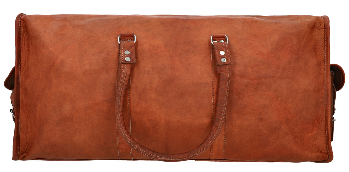 Borsa da viaggio Bagaglio a mano Weekender in stile vintage in vera pelle marrone