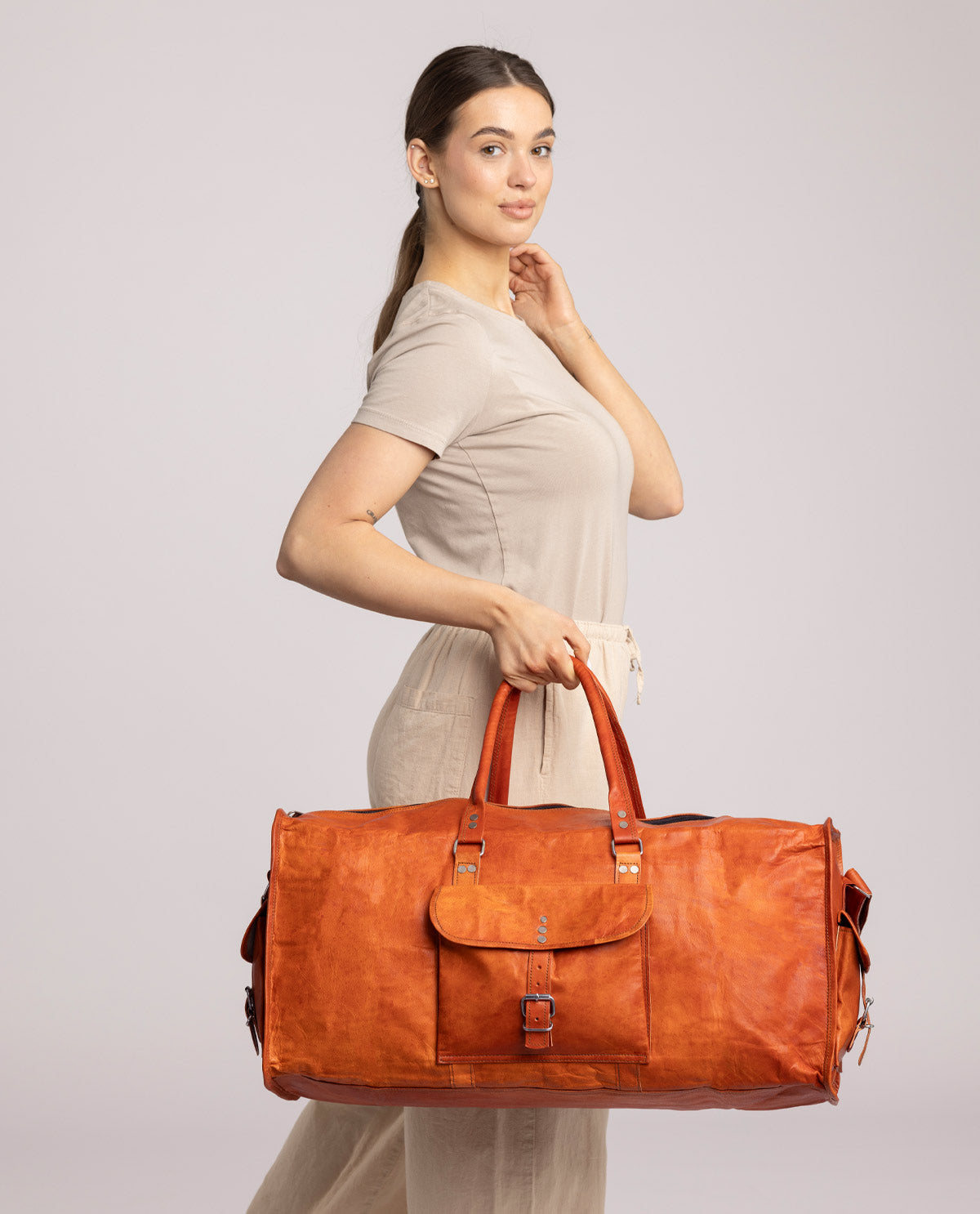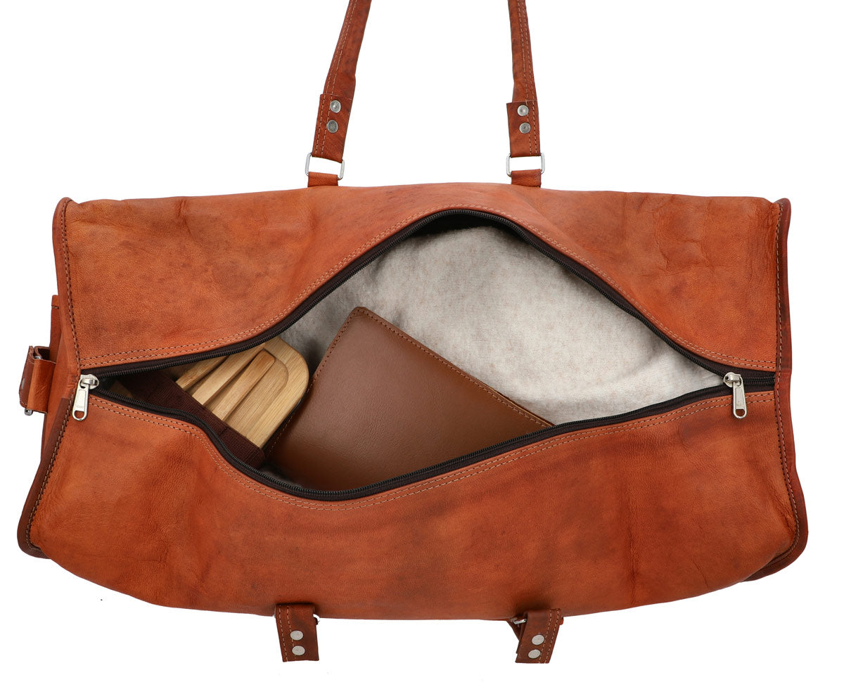 Stai pianificando una vacanza più lunga o solo una breve fuga per sfuggire alla routine quotidiana? Ispirata a Berlino, "Oscar" è in ogni caso la scelta giusta per te. La spaziosa borsa da viaggio in pelle di capra conciata al vegetale si distingue per il suo classico design vintage, l'alto comfort di trasporto e l'ampio spazio di archiviazione.