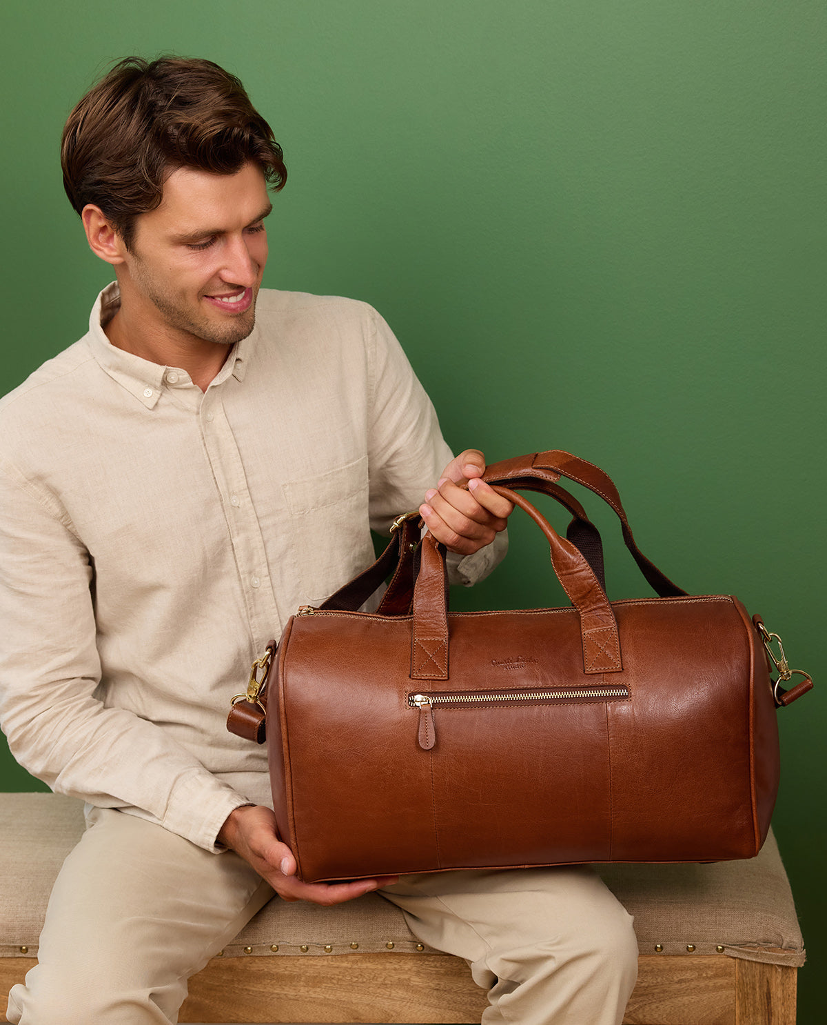 In questo aspetto, "Hall" è difficilmente superabile in eleganza disinvolta e fresca. La struttura uniformemente morbida e al contempo resistente del cuoio di bufalo marrone, combinata con il design classico senza tempo e le chiusure lampo dorate, sottolineano ulteriormente questo look più che alla moda. Eppure, non devi rinunciare al comfort. La tracolla regolabile è imbottita e garantisce che la borsa sia ancora comoda da portare anche quando è piena. Una tasca con cerniera separata all'esterno della borsa ti offre inoltre la possibilità di riporre il portafoglio, le chiavi, lo smartphone ecc., sempre a portata di mano, senza dover cercare a lungo. Un'altra tasca con cerniera all'interno e due tasche a fessura creano inoltre ulteriore spazio di archiviazione e un po' di ordine.