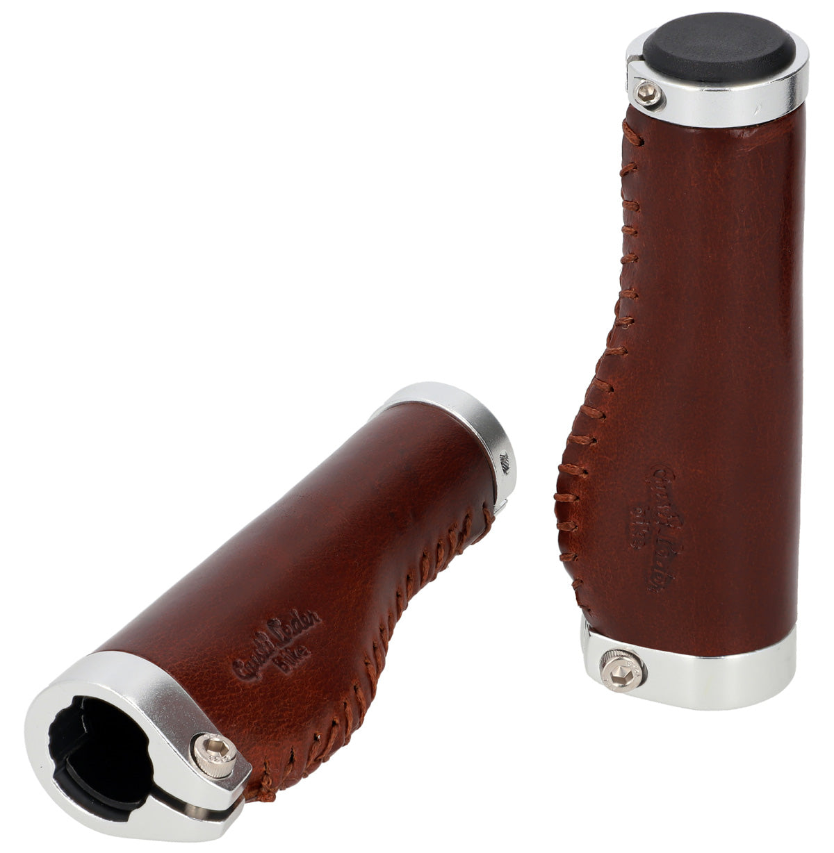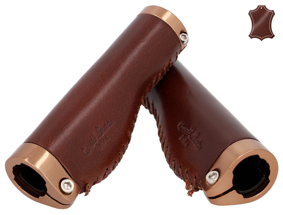 Le manopole in pelle "Phil A." si adattano perfettamente sia a una bici single-speed alla moda che a una classica bici olandese e sono facilissime da montare. Il loro mix di materiali di alta qualità, composto da alluminio colorato e 100% pelle vera, assicura una presa eccellente e un comportamento di guida costante. Allo stesso tempo, si adattano idealmente all'anatomia delle tue mani, attutiscono urti e vibrazioni e aumentano così la sicurezza della presa. Dopo un breve periodo di rodaggio, non vorrai più fare a meno del comfort tangibile e della piacevole sensazione al tatto di queste manopole.
