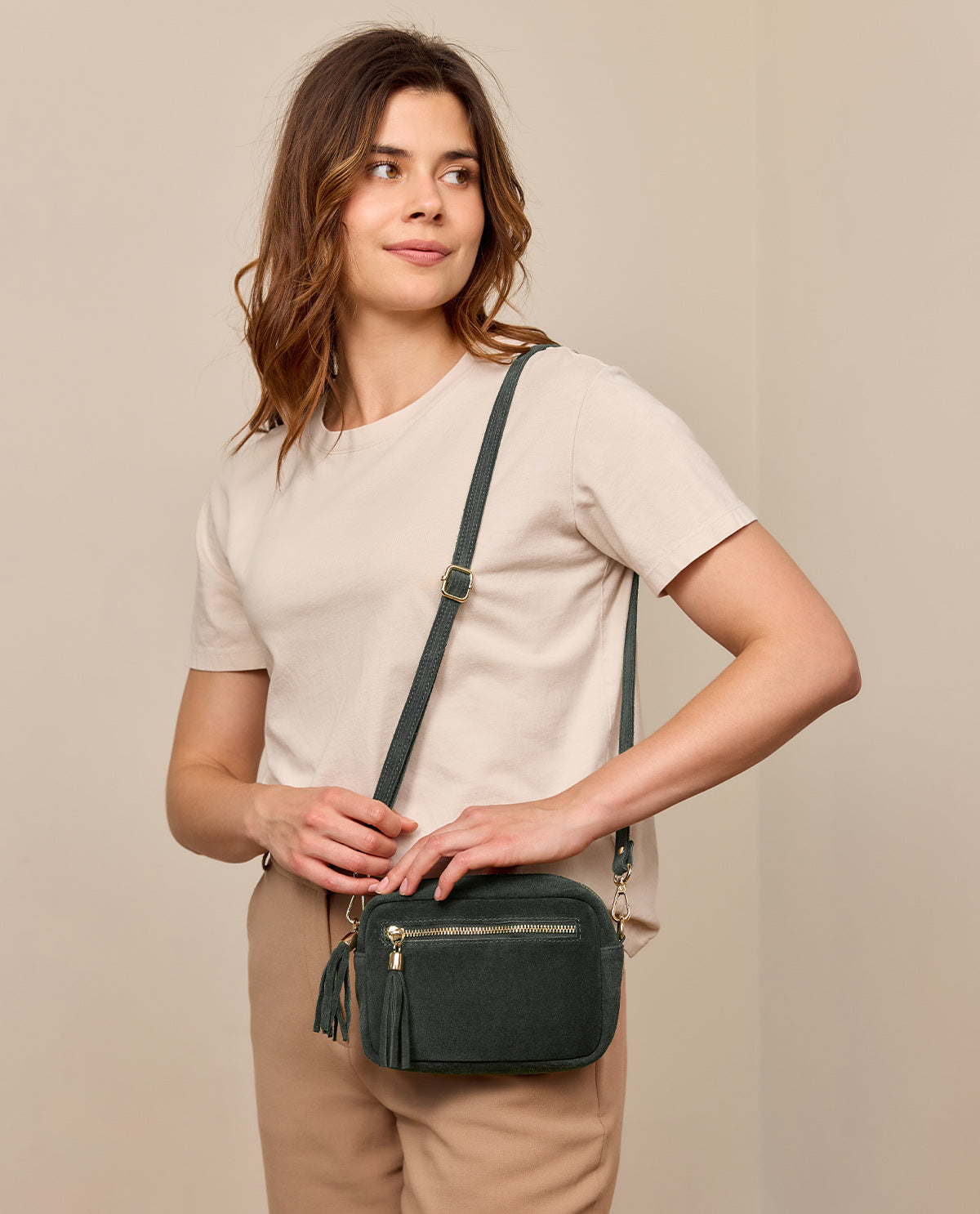 Marsupio Borsa da Cintura Borsa a Tracolla Donna Verde Scuro Pelle - Made in Italy