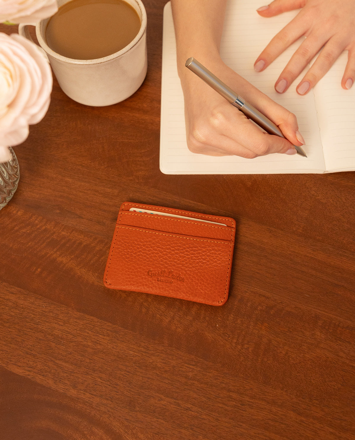 Pratico e stiloso – il portacarte "Qani" in pelle arancione