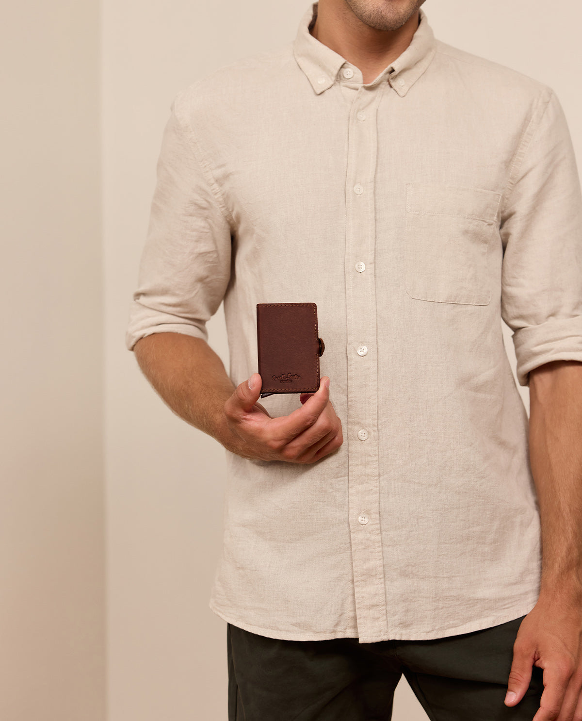 Il portafoglio "Murat" combina un design elegante con una funzionalità studiata. Realizzato in pelle marrone scuro di alta qualità, offre una soluzione elegante e duratura per donne e uomini. La cucitura a contrasto attraente aggiunge accenti discreti e sottolinea l'eccellente lavorazione.