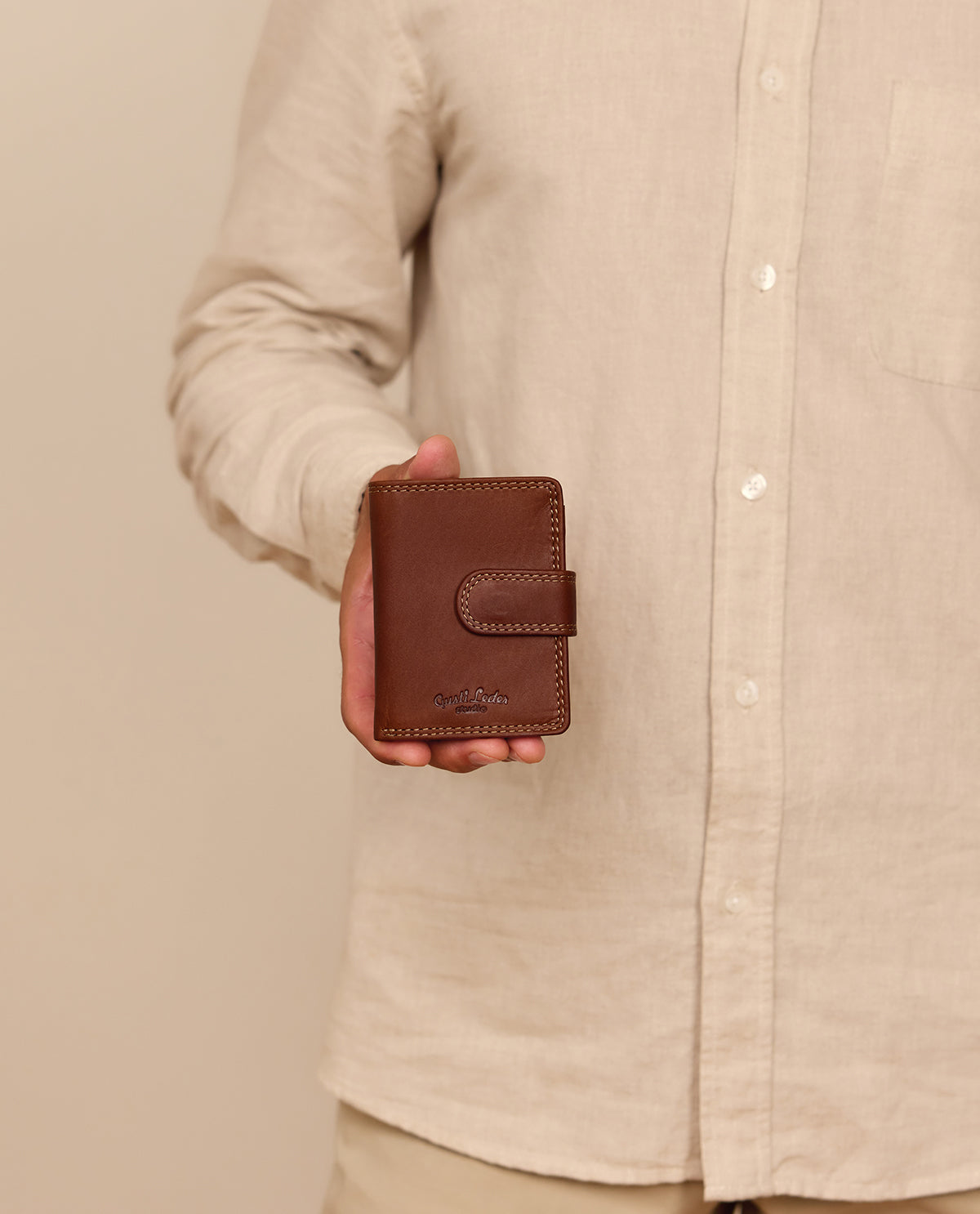 Il portafoglio "Matheo" combina un design raffinato con la massima funzionalità ed è la scelta perfetta per donne e uomini. Realizzato in pelle marrone scuro di alta qualità, convince per il suo aspetto elegante e la sua durata. Grazie al suo design sottile, si adatta facilmente a qualsiasi borsa senza rinunciare allo spazio. Che sia come porta carte, custodia per carte o classico portafoglio – "Matheo" ti offre una soluzione intelligente ed elegante per la tua vita quotidiana.