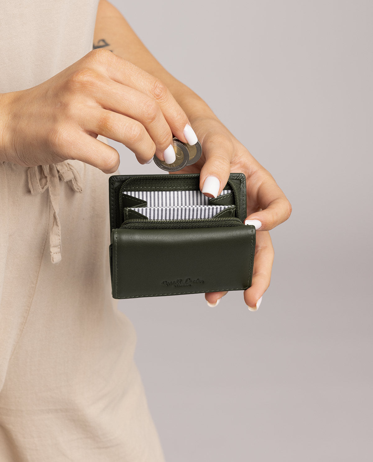 Portafoglio portamonete in vera pelle portafoglio verde pelle