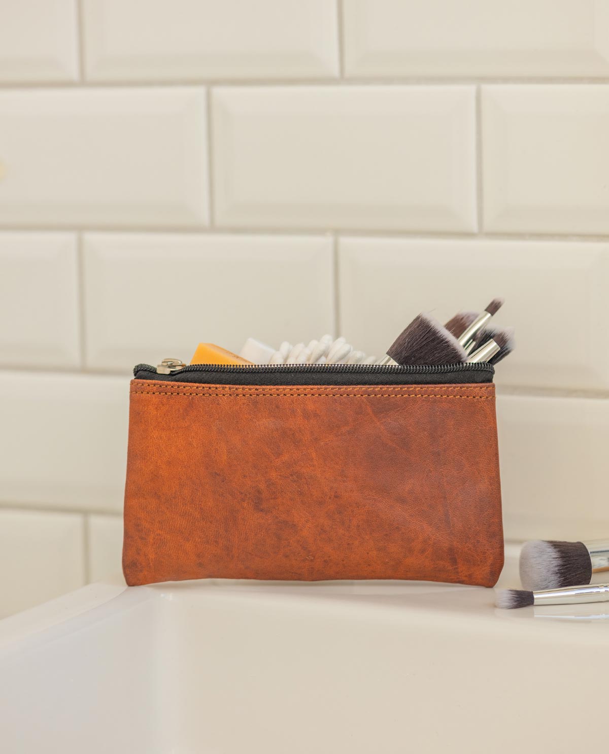 Borsa per il trucco Portamonete Borsa da viaggio Portadocumenti Borsa per cosmetici Vintage Marrone Pelle