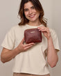 Perdi spesso il controllo nella tua borsa e cerchi all'infinito il tuo mascara o altri piccoli oggetti? Allora "Leo" è proprio quello che fa per te! Questa bellissima, piccola pochette assicura ordine nelle profondità infinite della tua borsa e convince con il suo design elegante. Realizzata in pregiata pelle bovina marrone, emana un'eleganza naturale che si integra senza sforzo nella tua vita quotidiana. La cerniera accentuata che gira tutt'intorno sottolinea l'aspetto classico e rende "Leo" un compagno elegante - discreto, ma comunque un colpo d'occhio.